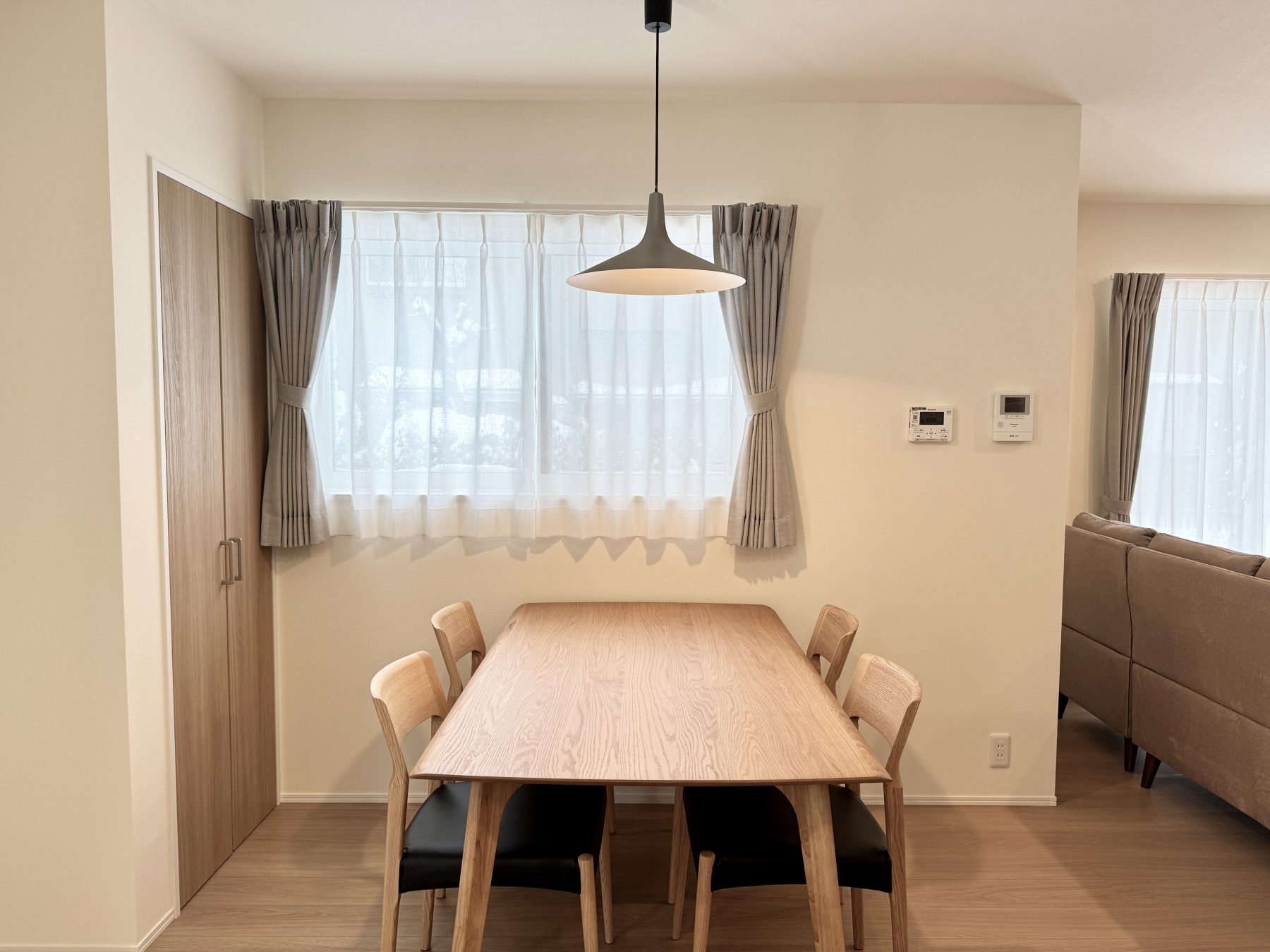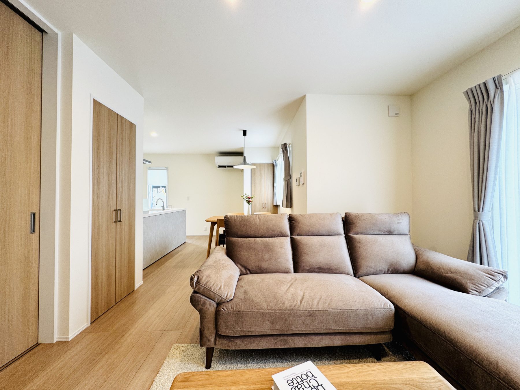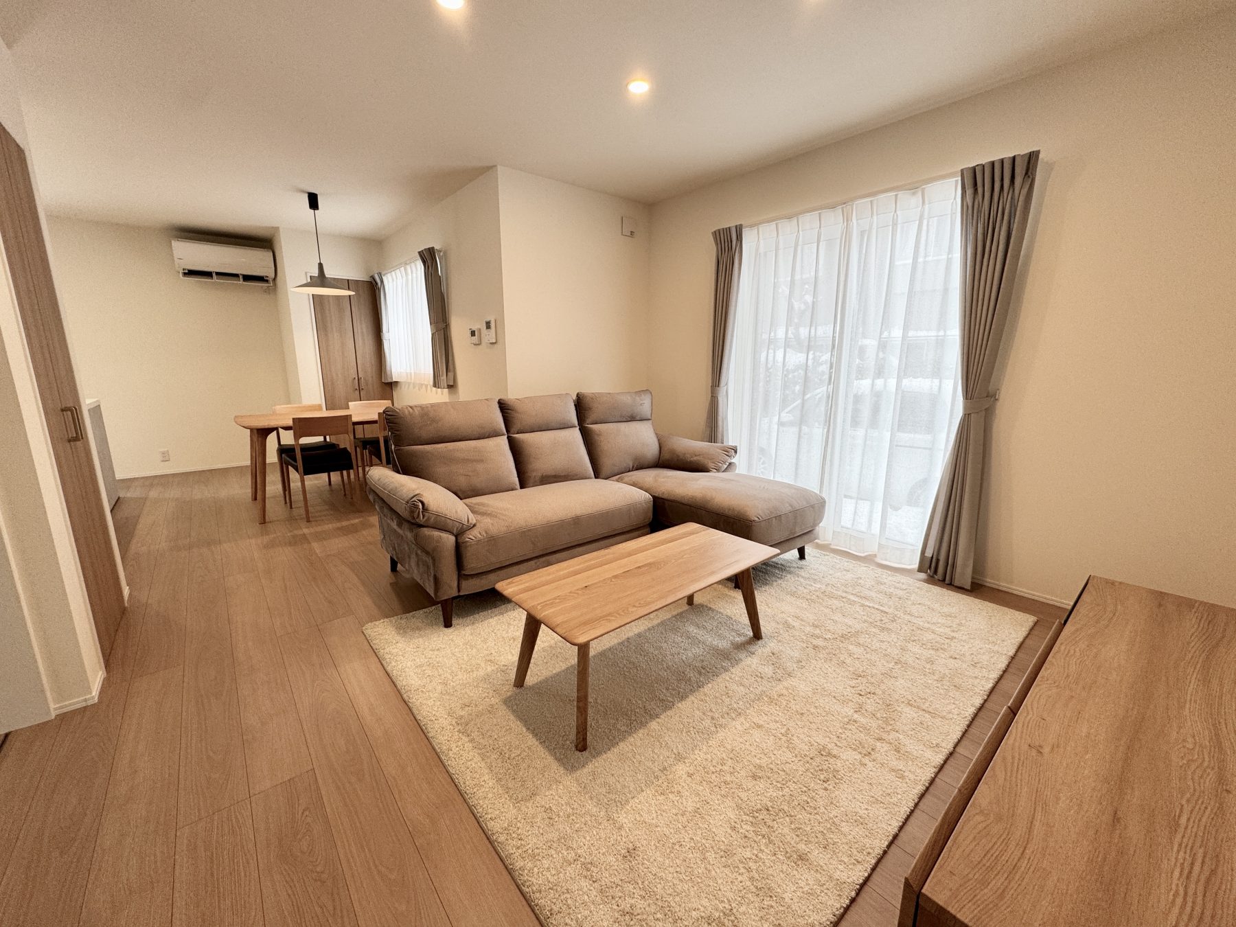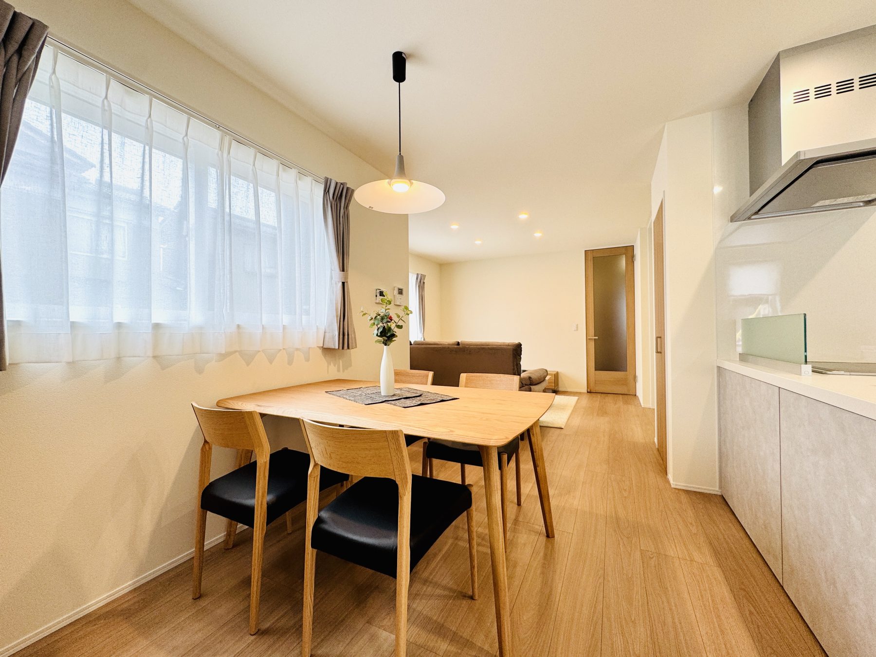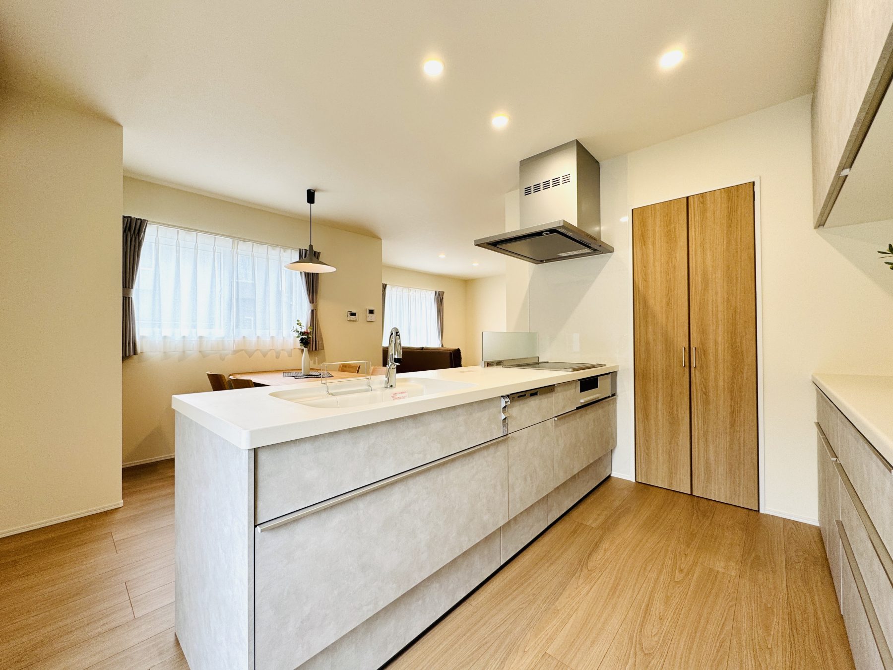 照明器具・カーテン・エアコン(LDK用)・オープンキッチン・タッチレス水栓・カップボード・IHクッキングヒーター・食器洗浄機・カラーモニター録画付インターホン・洗面化粧台・1,2Fトイレ・システムバス(浴室暖房乾燥機付き) ・アルミカーポート・植栽・外部コンセント・車用EVコンセントなど